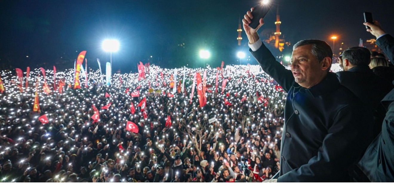 Konuşmasını “Yarın vatansa vatan, Çağlayan’sa Çağlayan, Taksim’se Taksim’e gideceğiz!” sözleriyle bitiren Özel, mücadeleye devam mesajı verdi.